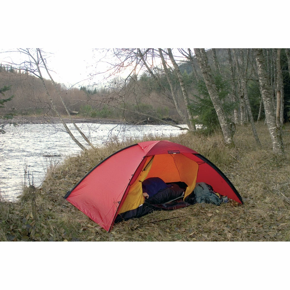 Hilleberg’s simplest solo tent, the fully freestanding Unna is supremely easy to pitch nearly anywhere – rocky shores, narrow ridgelines, dense forests (or, of course, even on “perfect” tent sites) – and it boasts an impressive amount of interior space. It is ideal for journeys in any season where low weight is a high priority, and where the terrain makes for tricky pitching conditions. Rather than a vestibule, the Unna has a spacious interior that easily accommodates the occupant and gear – or, in a pinch, two people. And by disconnecting a corner of the inner tent, one can create a virtual vestibule and keep the inner tent dry while entering or exiting in rainy conditions. Its dome design handles snow loading well, and its roominess and light weight lend themselves very well to mobile journeys, where you pitch your tent each day. Little wonder then that it has become a favorite of paddle tourers, year ‘round backpackers, mountaineers, cycle tourers and casual campers alike.