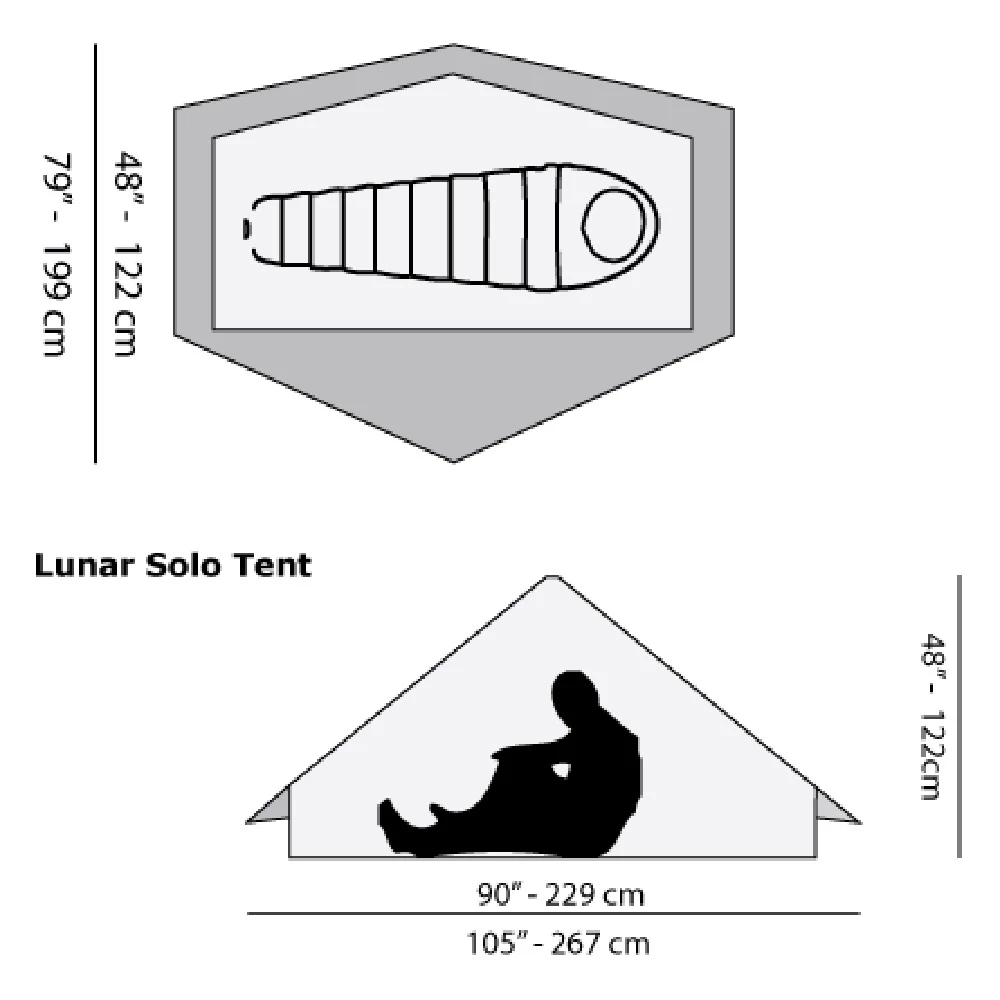 Six Moon Designs Lunar Solo’s distinctive low hexagonal shape easily spills the wind no matter the direction. Short, steeply sloped sides handle snow or high winds with ease. A generous canopy covers a 26 sq. ft. sleeping area plus 8.5 sq. ft. of vestibule storage. The 49″ peak height, set in the middle of the ultralight solo tent, maximizes room for sitting and taking care of chores.