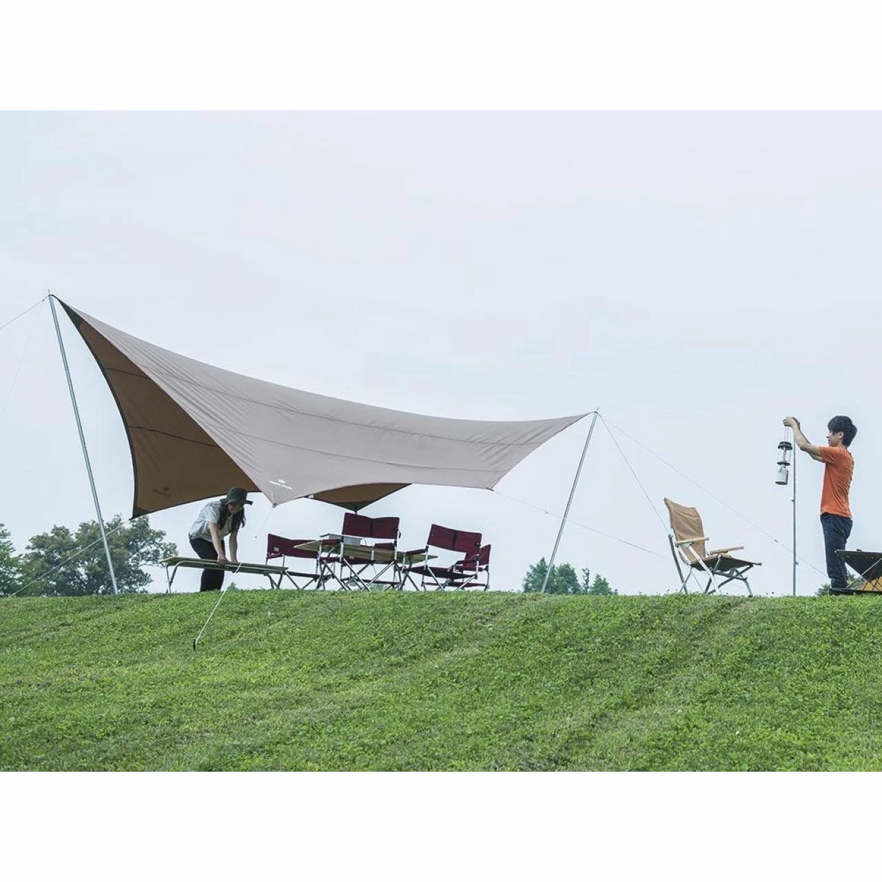- Tarp: 210D Polyester Ox, Shielding Pigment PU Coating 3,000mm, Teflon Water Repellent, UV Cut Processing